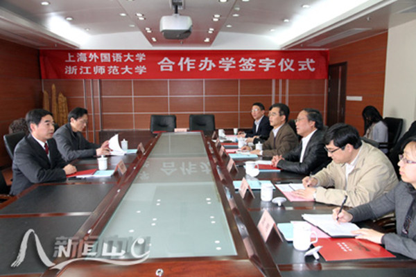 王辉简要介绍了浙江师范大学的基本概况。他说,是中国人外语学习的理想选择,为国家和社会培养了一大批有特色的外向型、复合型的外语专业人才。王辉代表学校感谢我校对浙江师范大学外语教师培养、外语教学研究和学科建设的支持和帮助,希望以此次签订合作办学协议为契机,继续深化两校合作,提升合作层次。