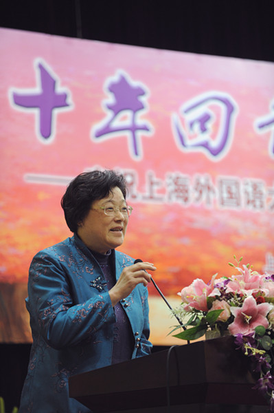 夏玲英主席,被整个大会深深感染,她赠予上外女教授女干部联谊会以最美好的话语,并为《十年回首 美丽绽放》文集寄语,她说,在上海教育的百花园中,盛开着一簇艳丽夺目的奇葩:她们以精湛国际语言、学识魅力,活跃在上海这座开放的城市,打造着外语教学的优秀品牌;她们以崇高的师德、人格魅力,培育着深受青睐的大学生;她们以技压群芳的水平摘走了“教师为世博添光彩”双语竞赛的桂冠,又以款款动人的旗袍秀在上海女教师风采展示中赢得一片赞叹。这簇艳丽夺目的奇葩,就是上外女教授女干部!这个屡创佳绩的群体,就是上外女教授女干部联谊会!夏主席用最美丽的语言赞美联谊会这个独特的群体,寄语她最美好的未来。