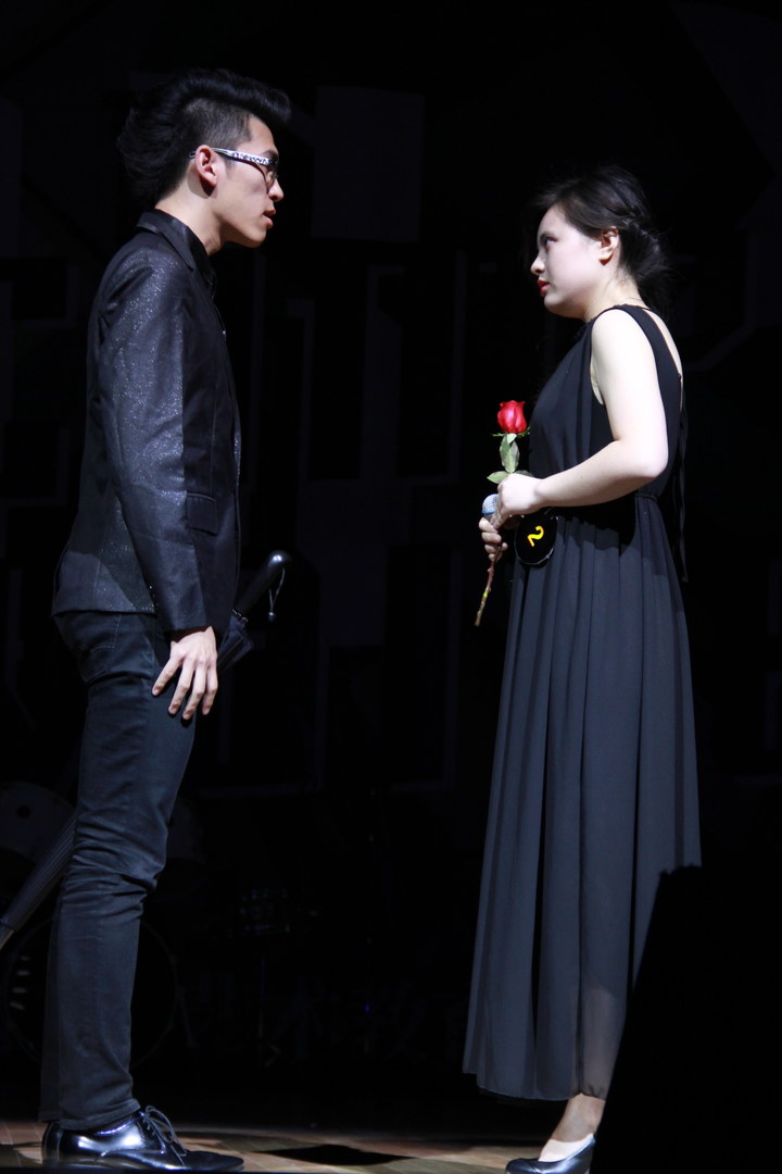 决赛舞台上请来的嘉宾演唱也是精彩连连。飞那儿话剧团的指导老师李然和11届十大亚军左一平合唱的《珊瑚海》余音绕梁。校团委朱鸣华老师和11届十大季军蔡敏瑜带来的《相思风雨中》让大家直呼过瘾。而北京大学11届十大歌手马晓琳和专业音乐制作人杜凯特也地从北京飞来助阵,两首爵士小清新,让同学们感到了校际音乐交流的魅力,感叹北大学子歌唱才华果然功力了得。