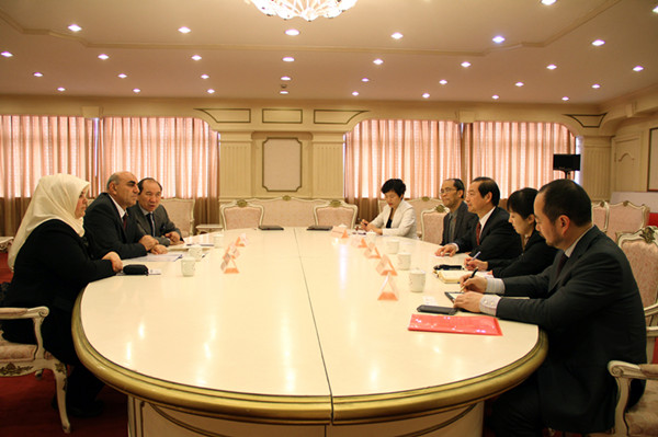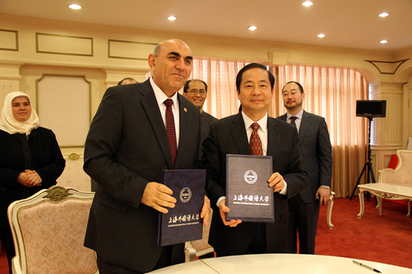 曹校长向客人表示欢迎,介绍了学校的历史、现状及发展前景,指出作为中国外语教学历史最悠久大学之一的上外目前已发展成为拥有外国语言文学、法学、经济学、管理学和新闻学等学科的高等院校;人才培养的国际化程度不断提高,目前学校已同世界上250多个大学、研究机构和国际组织建立了合作交流联系。我校设有教育部国际司培育基地——俄罗斯研究中心和上外中亚研究中心,同俄罗斯及中亚地区国家保持有较为密切的联系,相信此次吉尔吉斯斯坦土耳其-玛纳斯大学校长代表团访问我校将对我校与中亚地区的教育交流、对中亚地区的区域及国别研究起到积极的作用。