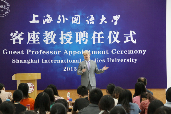 随后,阿利莫夫大使就塔中关系为出席聘任仪式的俄语系师生作了精彩报告。阿利莫夫大使回顾了塔中友好关系,希望在塔中友好合作的基础上建立两国战略合作伙伴关系,并就两国经贸合作、水电开发、教育交流等问题阐述了自己的观点。报告结束后,阿利莫夫大使回答了我校俄语专业学生提出的问题。上外学生的语言能力和综合素质给阿利莫夫大使留下了深刻印象。