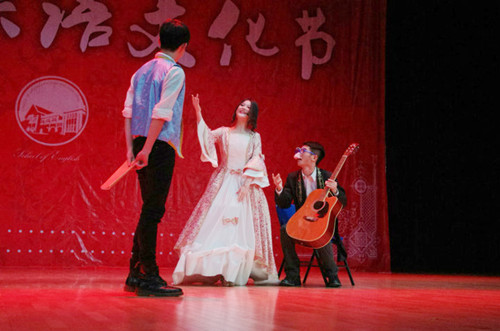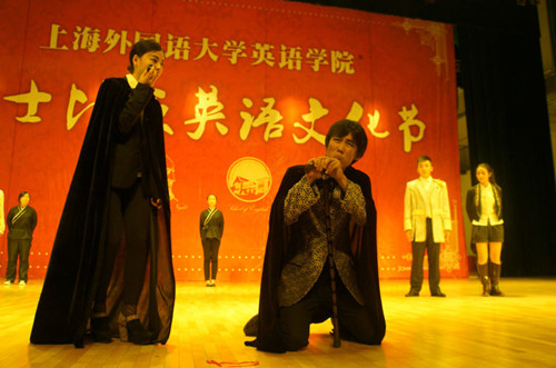 又是一年莎剧时,今年为了丰富英语专业人文教育内容,配合学院开展的英语人文化教学改革,英语学院将一年一度的莎士比亚戏剧公演扩充为“莎士比亚英语文化节”,增加了莎剧影视作品配音比赛、英语诗歌诵读、莎士比亚和英语学院前辈的人文风范等学术讲座等活动。此前举行的系列活动得到了同学们的广泛好评,活动取得了圆满成功。(英语学院)