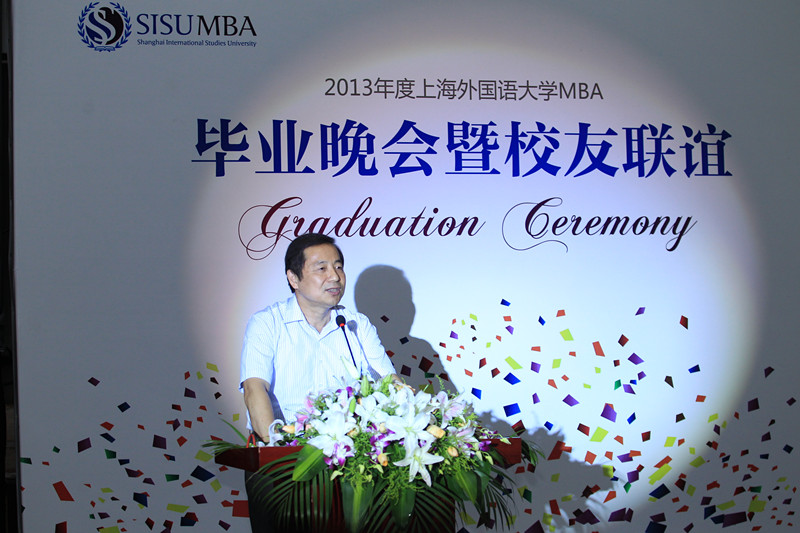 7月27日晚,2013年度MBA毕业晚会暨校友联谊活动在上外虹口校区逸夫会堂举行。校长曹德明、副校长冯庆华、张峰、周承及部分相关院系和部处领导以及部分企业嘉宾出席了晚会。