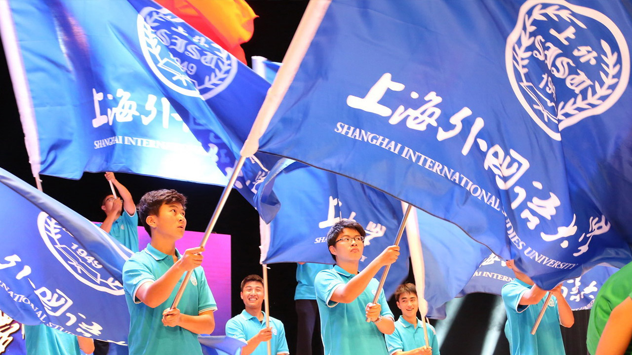 开学典礼仪式结束后,校领导和全体新生共同观看了大学生艺术团表演的音乐短剧《战地蔷薇》。这部音乐剧的创作灵感来自于我校东方语学院阿语系2009届校友王薇薇的真实经历。她作为中央电视台战地记者,在硝烟弥漫、战火纷飞的的叙利亚街头进行新闻报道的事迹曾在网络引起热议。这部音乐短剧所表现的“让每个青年都有梦想,让每个青春都能绽放”的主题,正是对于“青年梦”、“中国梦”的叩问与思考,也提示了在座新生“大学之道 青春之路”的行走方式。为了这次演出,已经毕业的校友艾力迪亚·阿尔斯郎、沈道灵特地远道而来,和其他在校演员共同为2016级新生献上了一场精彩的演出。演出尾声,伴着校歌的激昂歌声,由校棒球队学生组成的旗队将舞台装点成旗帜的海洋,舞动的国旗与校旗将全场的气氛推向了高潮。