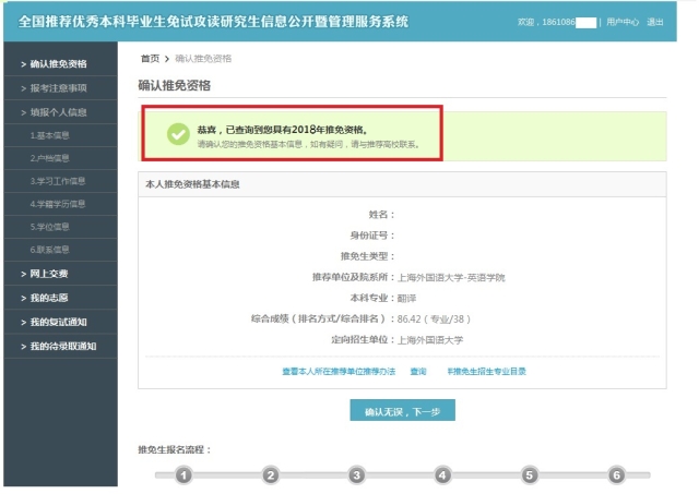 附图:推免服务系统中推免资格截图样张(报到时须提供,或)