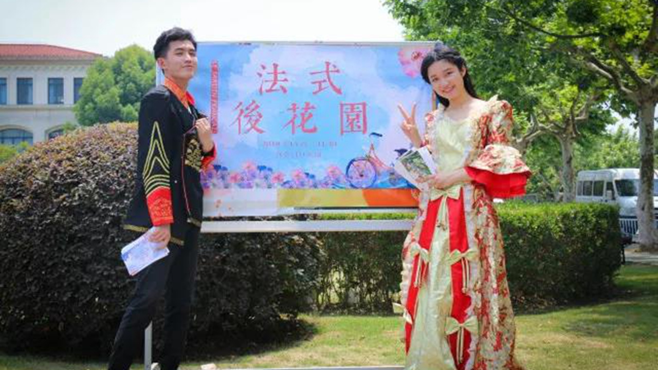 在五月举行的法兰西短剧节,法语系的同学们以班级为单位编排10分钟短剧,展现天马行空的想象力、惟妙惟肖的表现力和富有深度的思考力;上周二刚刚举行的“法式后花园”游园会活动,各院系的同学一同在食堂与师活间的小花园内开启城堡之旅,参加各种游戏,了解和欣赏法国的城市、戏剧与美食文化。