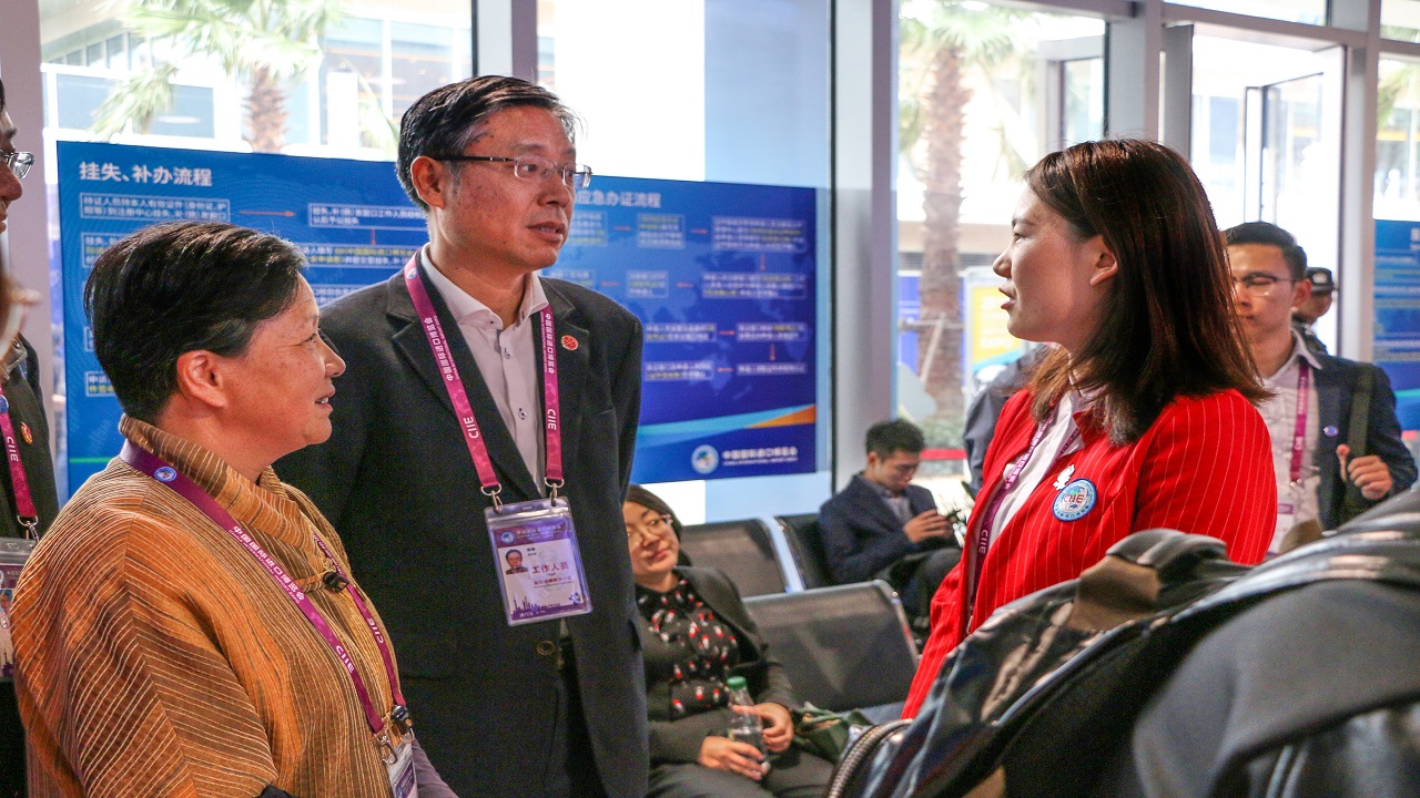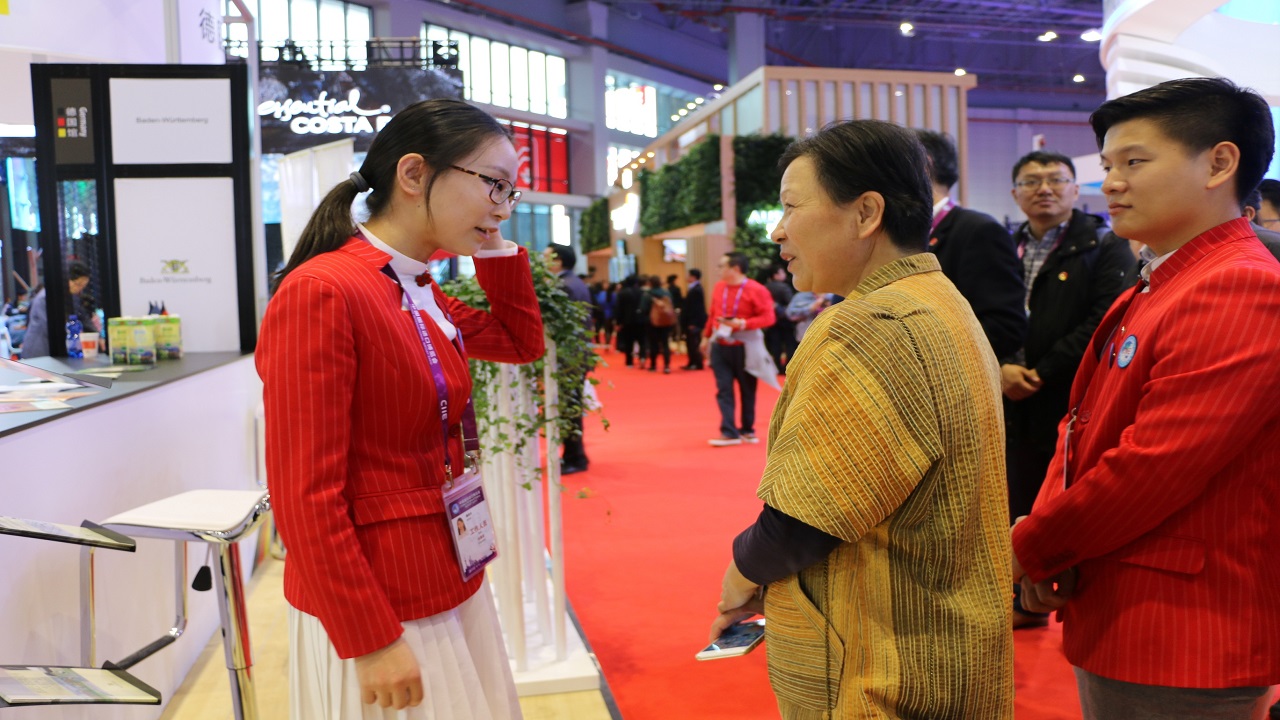 从外部看,国家会展中心宛如四叶草,象征和谐美好的愿景,而内部国家馆中汇聚的来自82个国家、3个国际组织所设立的71个展台,是本届进博会的一大亮点。作为国家馆志愿者组组长,丁舸航介绍:“我们60位上外人在此上岗,为来自世界各国的与会者提供便利服务。”同为志愿者的俄语教师左菲菲也坦言到:“进博会是对专业知识和身心素质的极大考验,十分感谢老师们的慰问。”