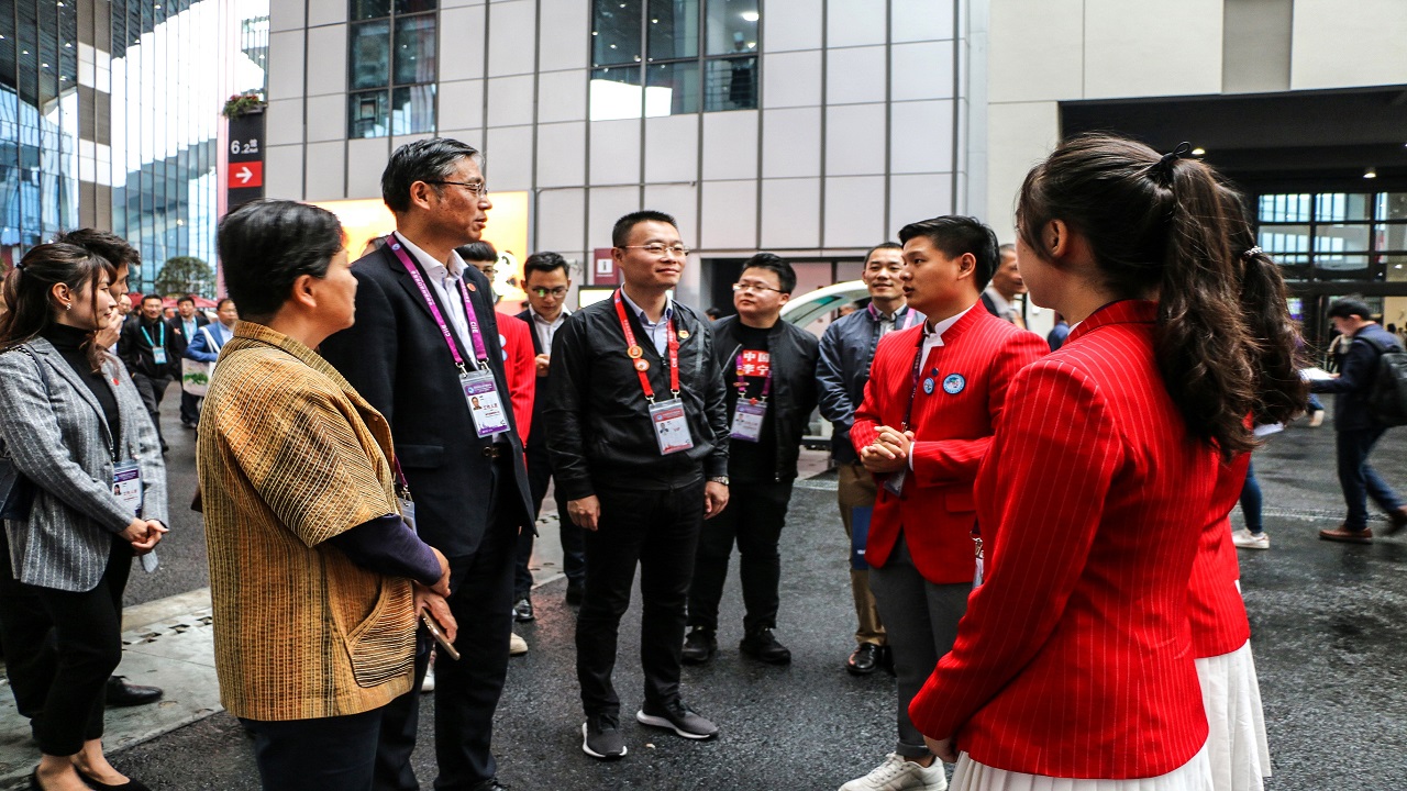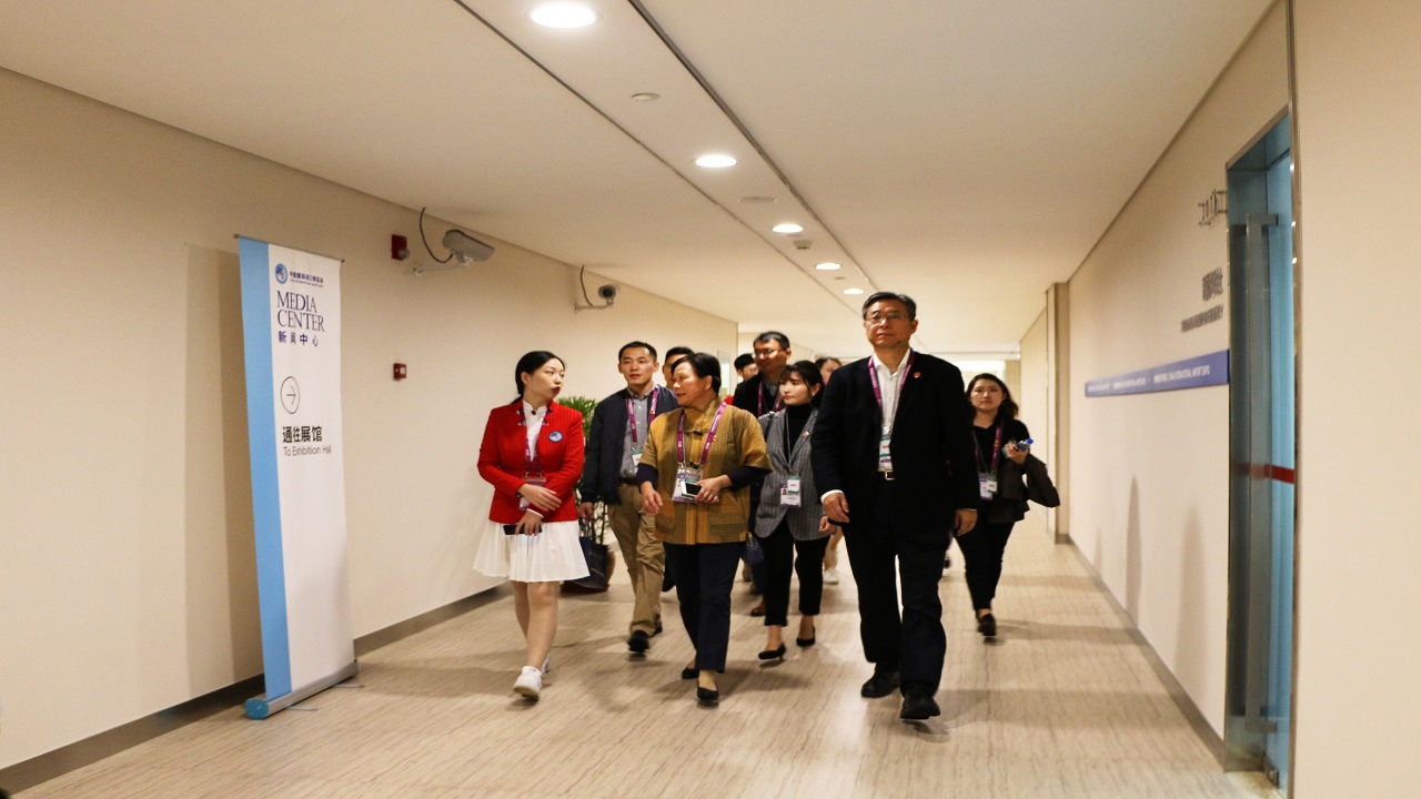 最后,慰问团与新闻中心的志愿者亲切攀谈。作为进博会信息的唯一出口,新闻中心的重要性不言而喻,上外学子以其扎实的政治思想素养、过硬的专业理论知识,得到了进博会主办方的一致好评。