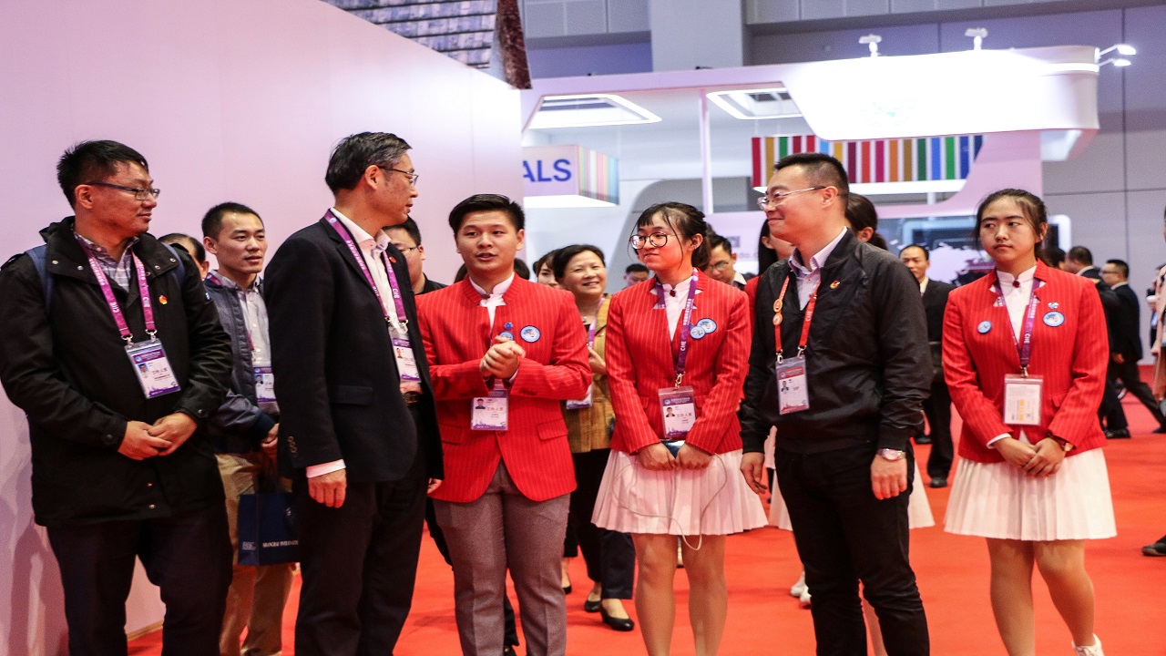 在同学们的带领下,慰问团参观了风格迥异的展台,既有以象形文字、法老饰品为特色的透着神秘气息的埃及展台,又有展示新型赛车、引领科技创新的意大利展台。