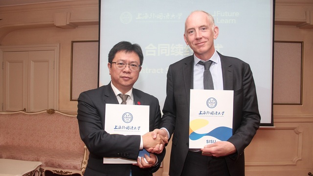 11月12日上午,与英国大规模在线开放课程(慕课MOOCs)平台FutureLearn合同续约仪式在举行,校长李岩松与FutureLearn行政总裁西蒙·尼尔森(Simon Nelson)代表双方交换合作协议。国际文化交流学院院长张艳莉、国际教育学院常务副院长金慧、田小勇老师、教务处副处长王会花等出席续约仪式。续约仪式由对外合作交流处副处长王征主持。