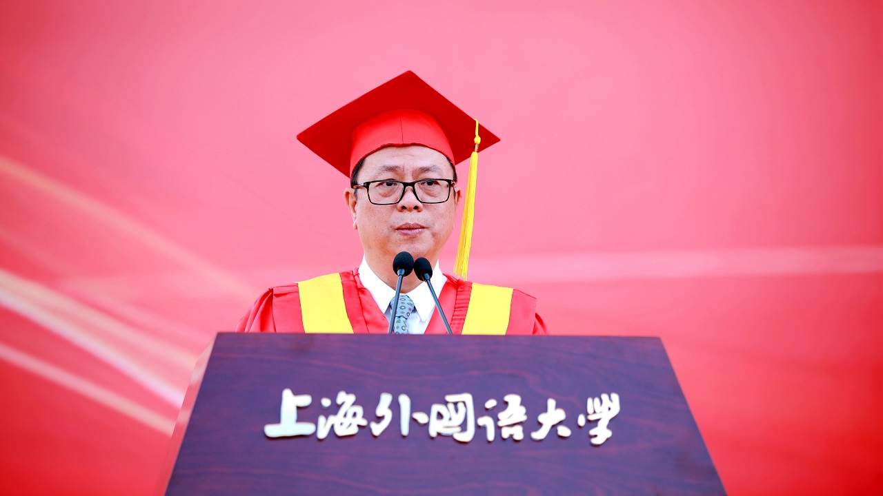 李岩松校长向2019届毕业生表示衷心的祝贺。李校长寄语毕业生应“身处变化时代,不变奋斗初心”,勉励毕业生准确“识变”,科学“应变”,主动“求变”,胸怀高远理想,担负时代重任,在家国情怀与上外精神的承继中寻找人生的乐趣和价值。