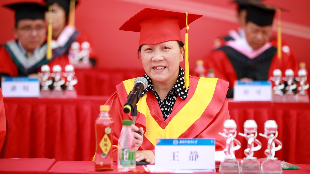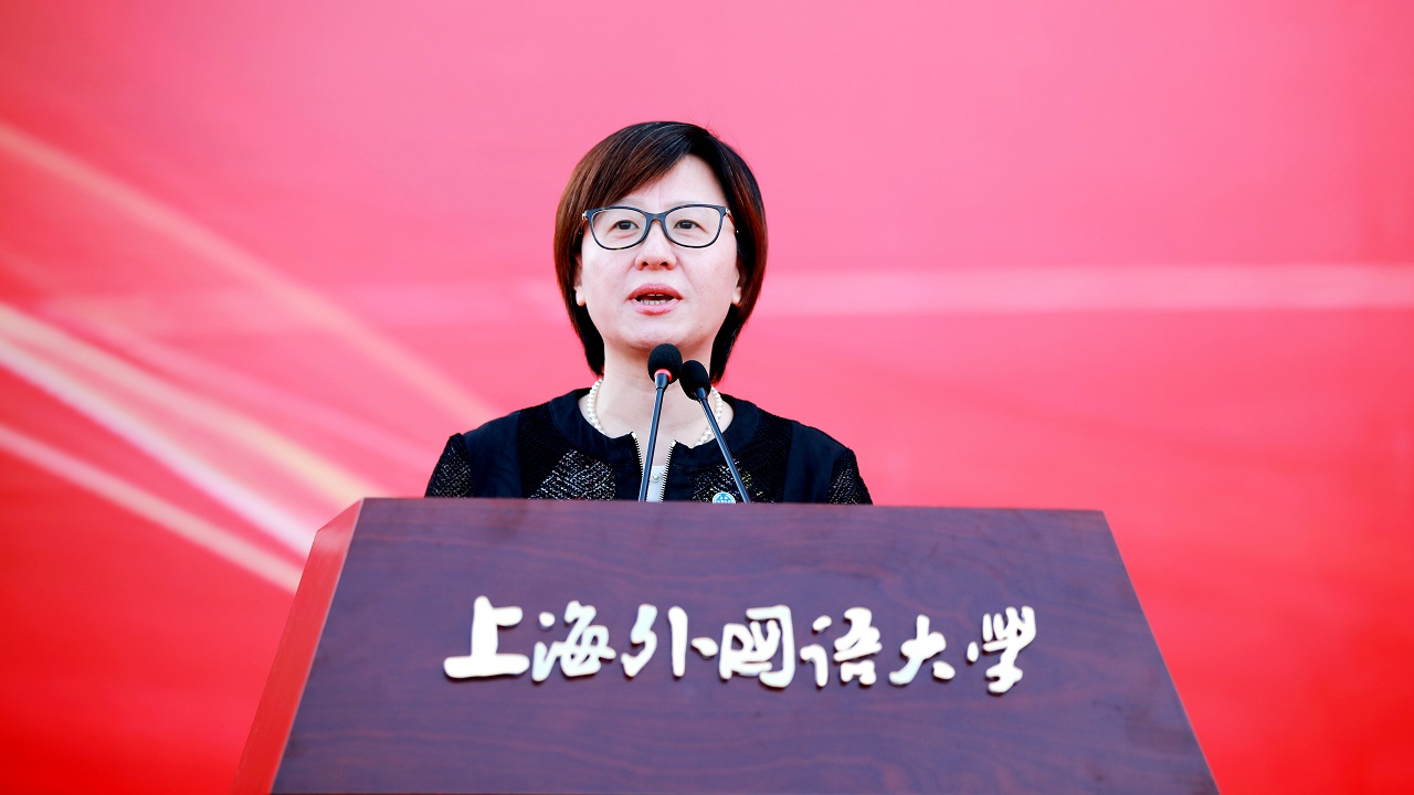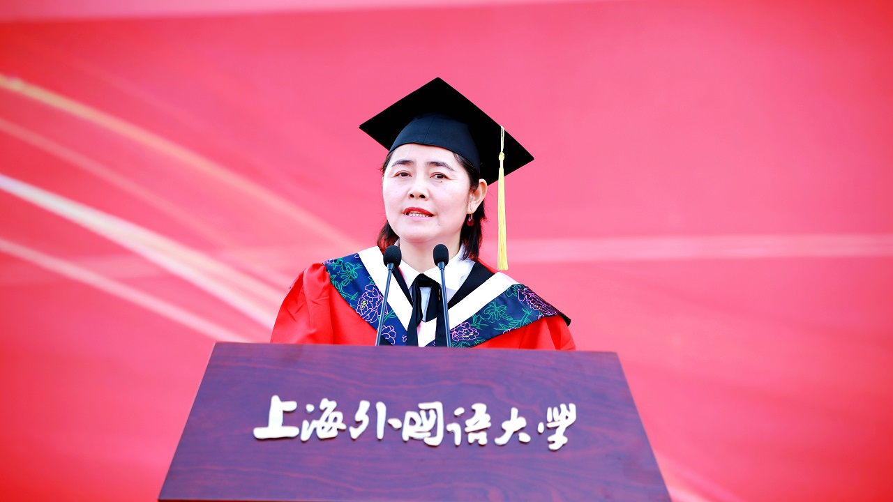 国际教育学院常务副院长金慧教授代表全体教师致辞。她说,先辈用勇气与热血书写了中国红,上外人用博大与宽容成就了上外蓝,希望2019届毕业生用传承与创新渲染生命的青色,在人生的道路上尽情拼搏。