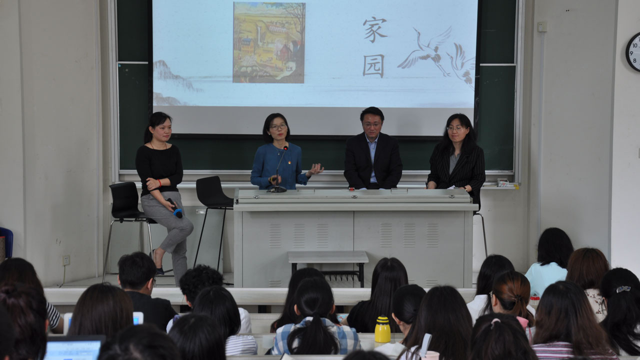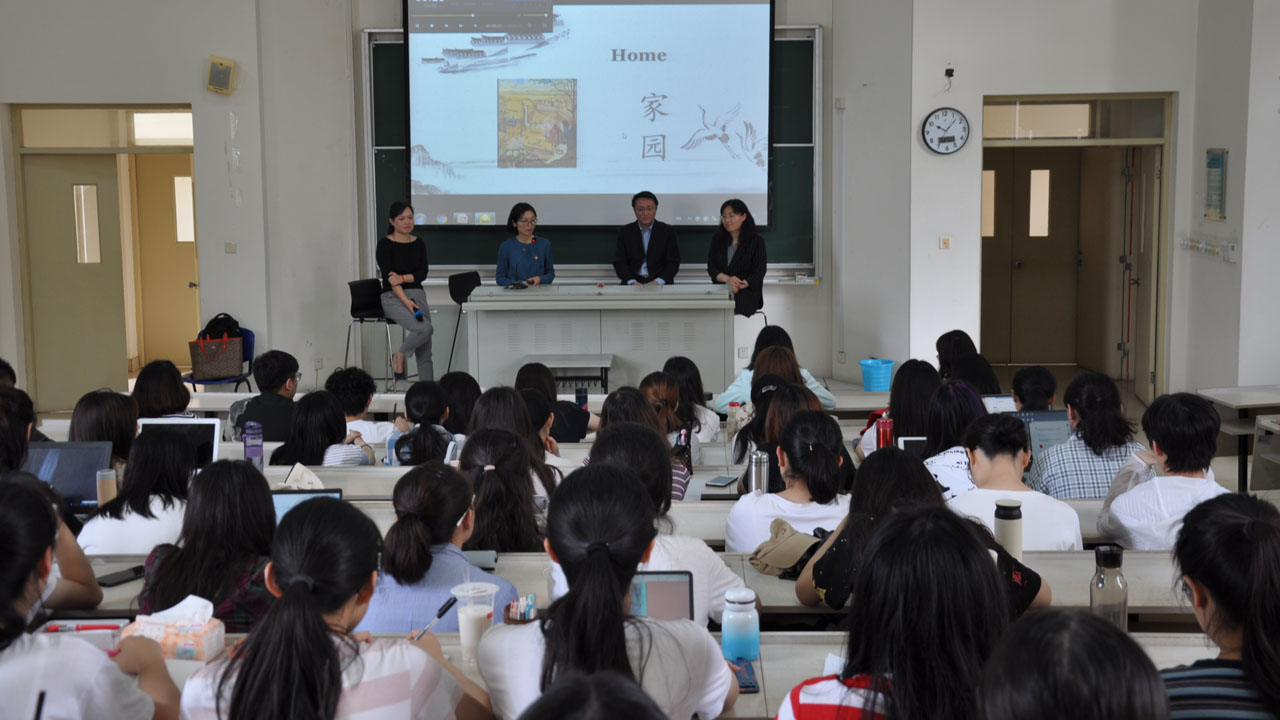 2019527日上午,英语学院《英美概况》课程团队杨维嘉、孙麟、忻华、张新彬四位教师共同上了一堂别开生面的《英美概况》课程思政创新 英语公开课。作为2019年上外春季学期“课程思政”系列公开课之一,本公开课在教学形式和方法上锐意创新,采用国际学术会议公共讨论形式,四位教师联袂主讲,建立“师师、师生、生生”三维讨论空间。