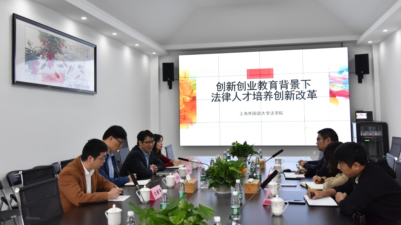 张海斌院长在发言中对施登宇校友的热情接待表示感谢,简要介绍了上外法学院近年来人才培养模式创新改革的思路、进展和成效。他表示,创新创业教育背景下的法律人才培养模式创新改革是新时代给法学教育提出的新课题,也是上外法学院人才培养模式创新改革的重点。法学院将继续围绕学校的总体部署,“不忘初心,牢记使命”,以培养创新创业理念为目标,不断优化法律人才培养方案,深化法律课程体系改革,调整师资队伍结构,创新教学方式方法,努力培养具有创新精神、创业意识和创业能力的社会主义法治人才。