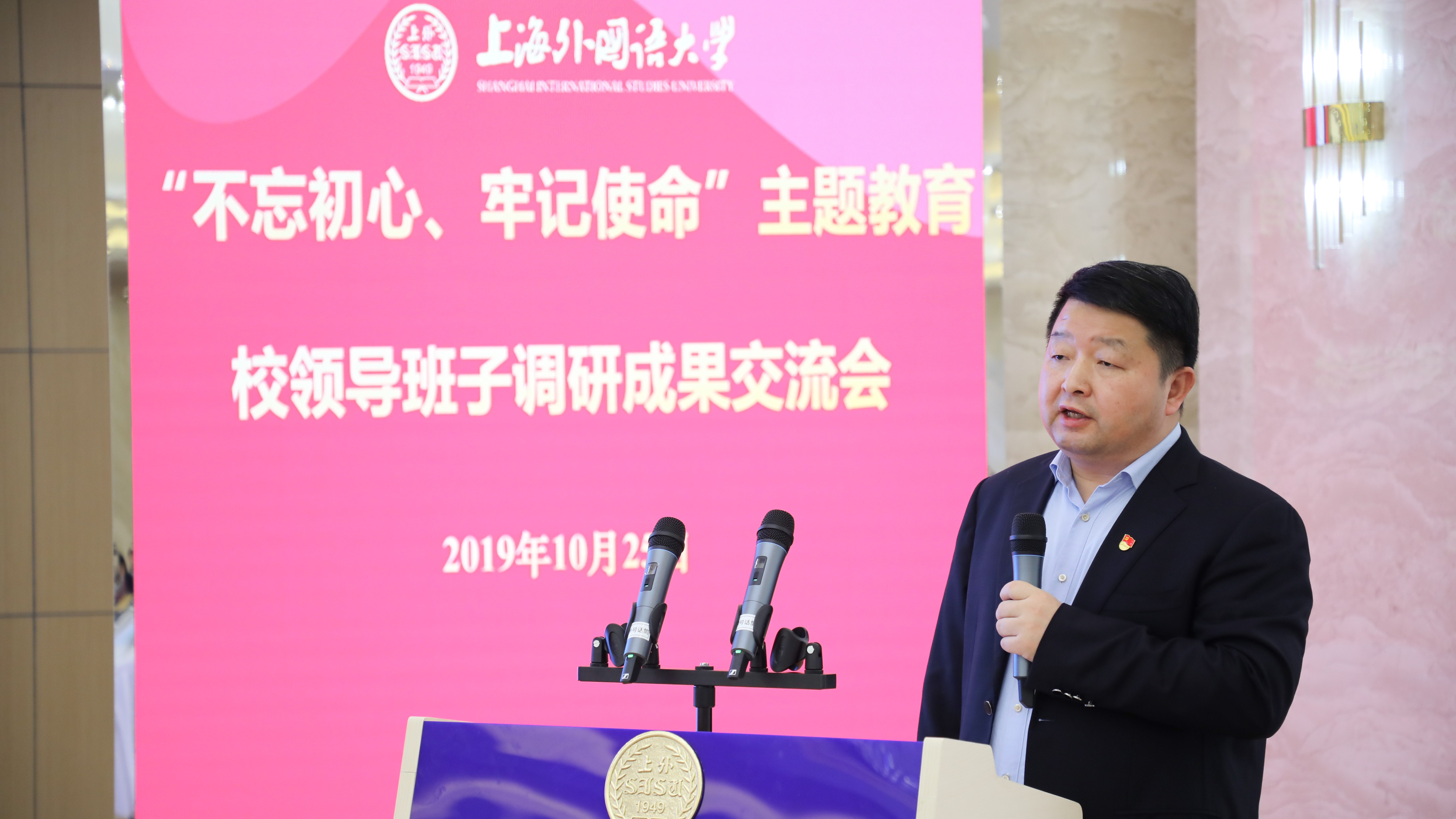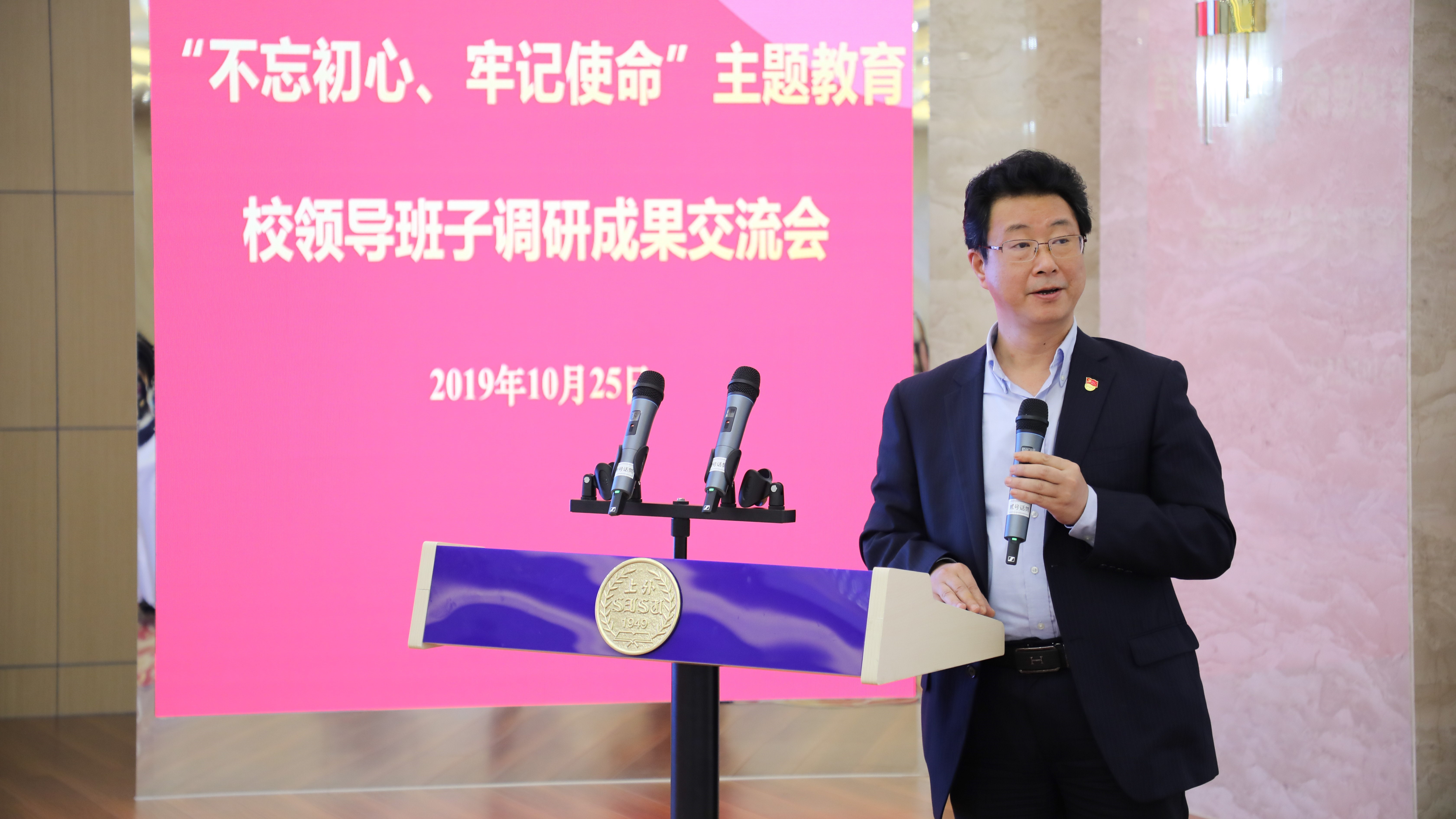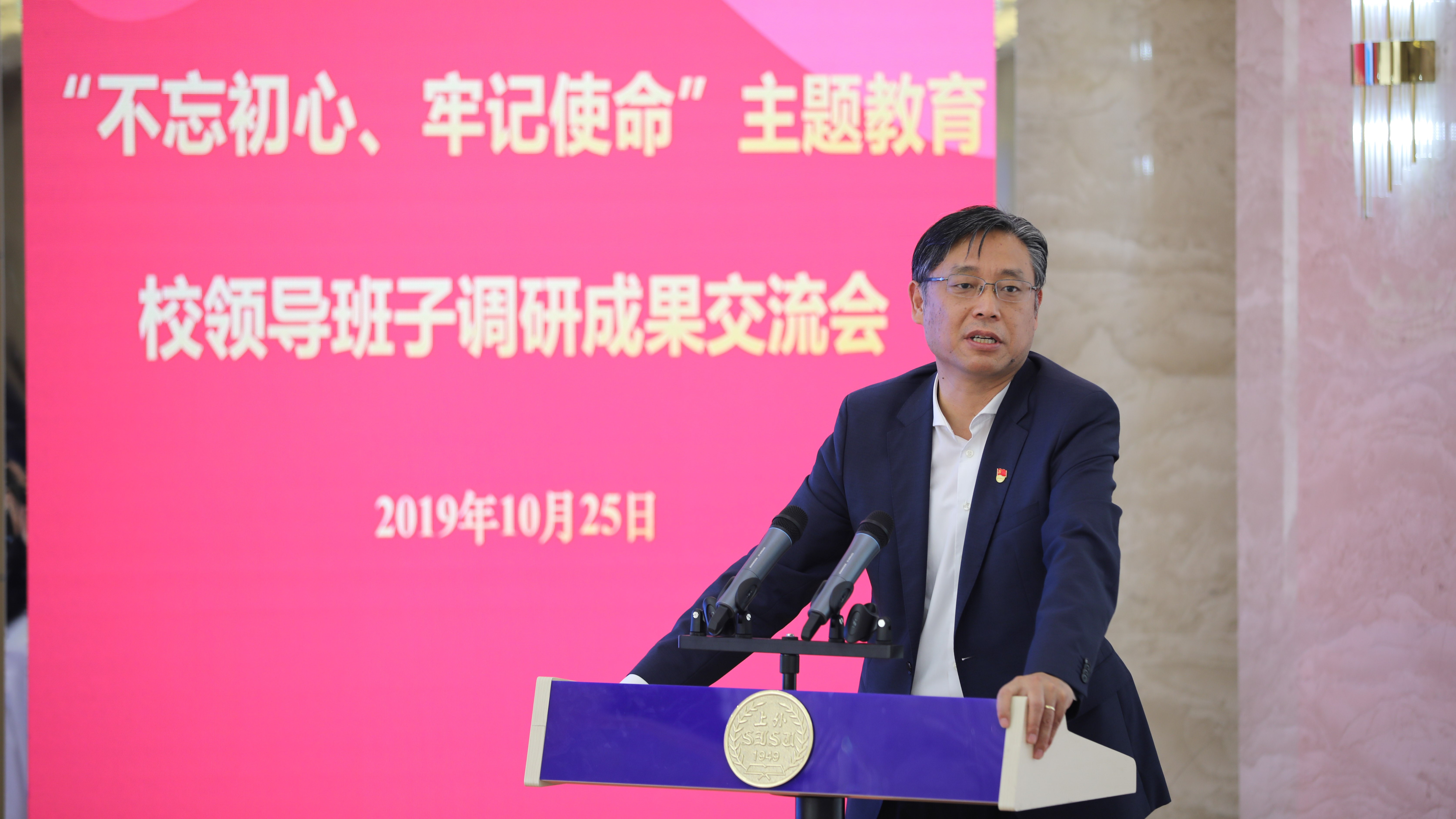 10月25日下午,举行“不忘初心、牢记使命”主题教育校领导班子调研成果交流会。会议由校党委书记姜锋主持。教育部直属高校主题教育第六巡回指导组组长朱拓出席会议并讲话,指导组副组长刘建中,组员谢峰、米华全列席会议。在沪校领导李岩松、王静、钱玲、林学雷、张静、查明建参加会议。