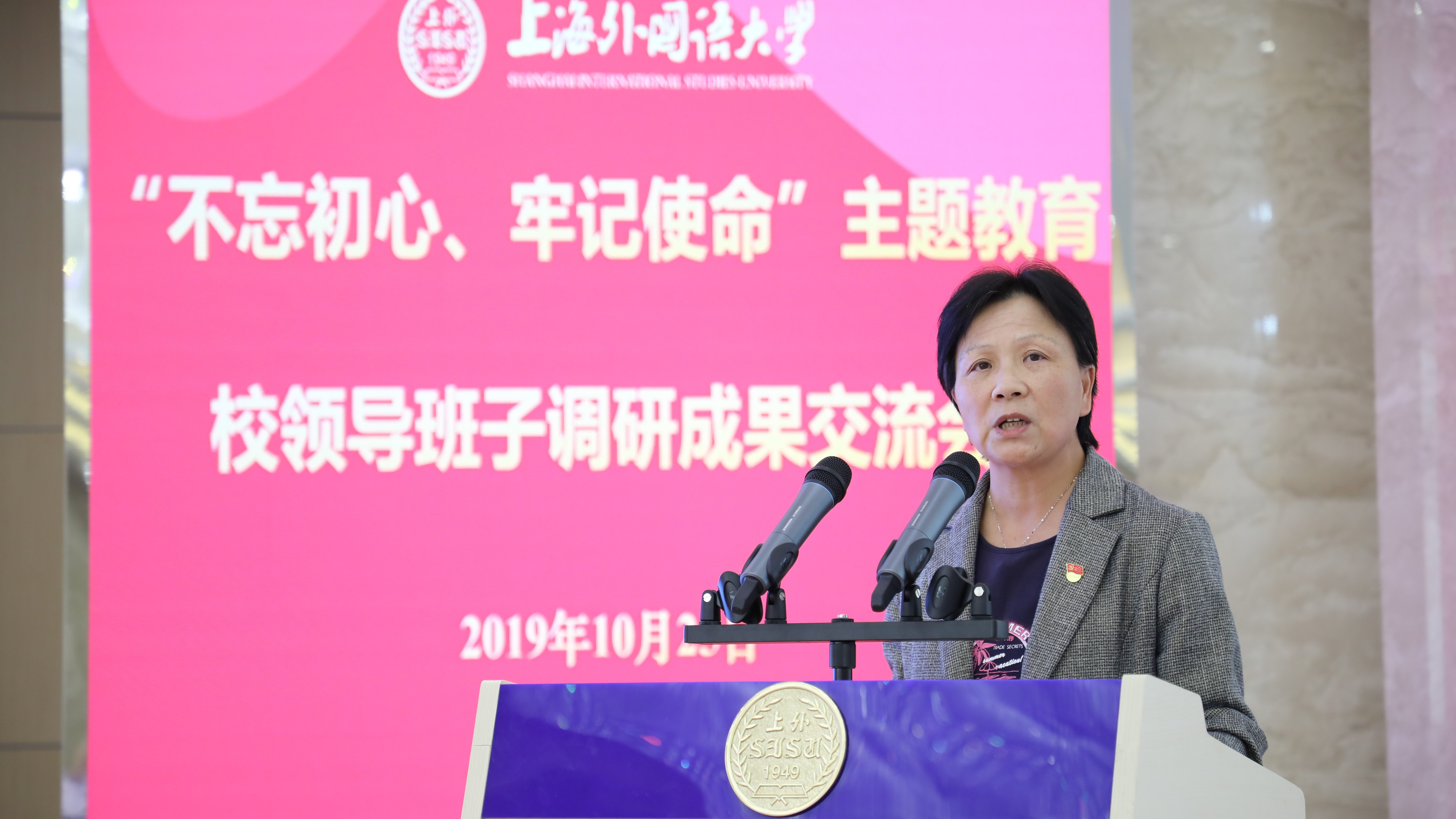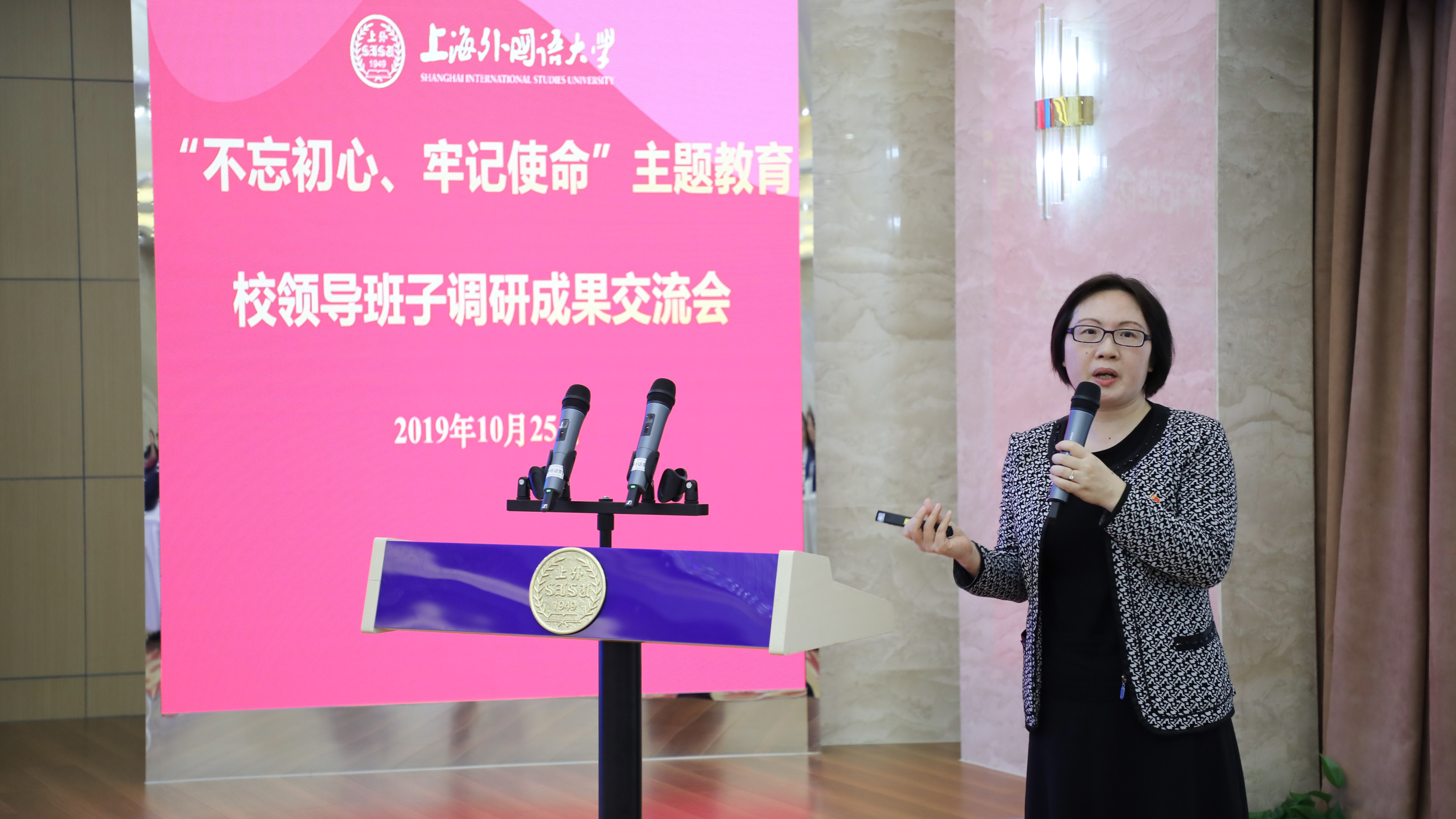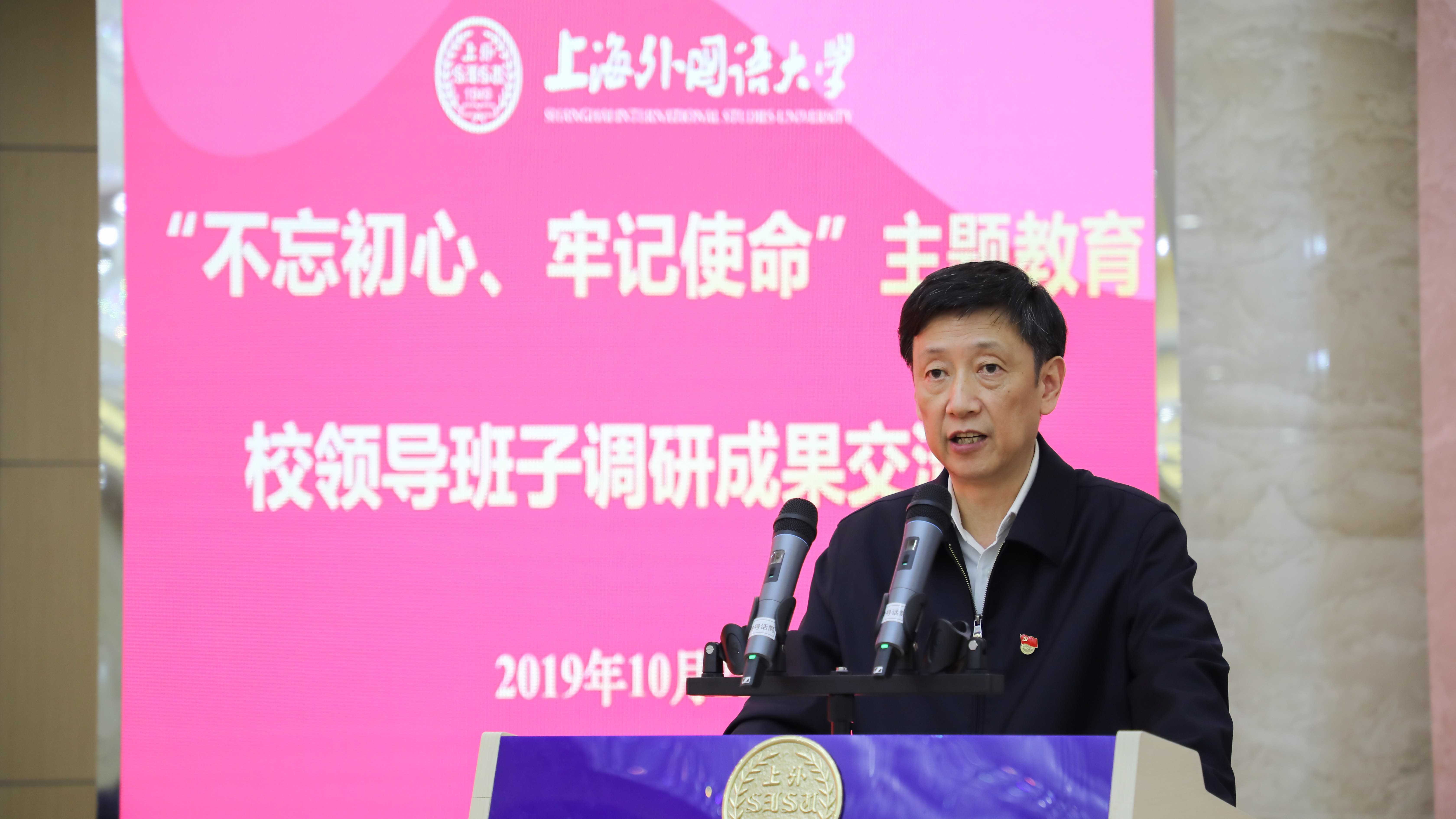 10月25日下午,举行“不忘初心、牢记使命”主题教育校领导班子调研成果交流会。会议由校党委书记姜锋主持。教育部直属高校主题教育第六巡回指导组组长朱拓出席会议并讲话,指导组副组长刘建中,组员谢峰、米华全列席会议。在沪校领导李岩松、王静、钱玲、林学雷、张静、查明建参加会议。