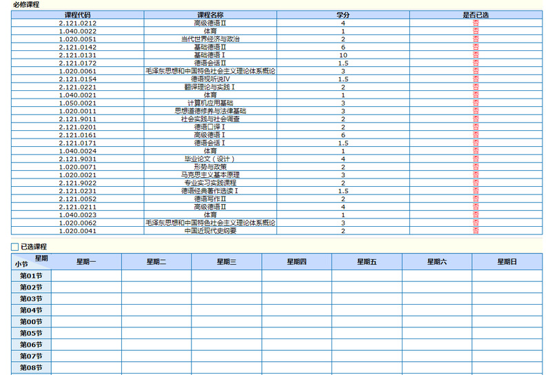 专业教育课程请根据院(系)下发的课表进行选课。
