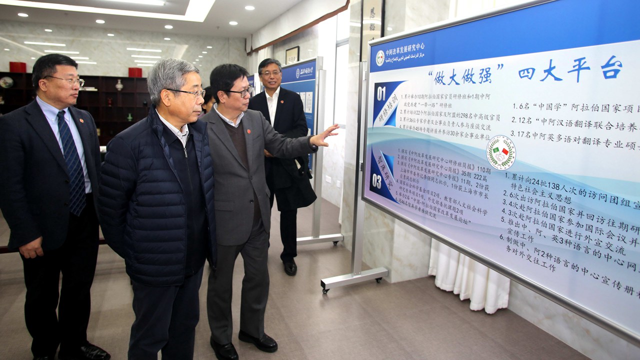 在习近平主席倡议成立的中阿改革发展研究中心,陈宝生部长一行了解中心近年来成为中阿双方交流改革开放、治国理政经验的思想平台的成果,认为中心是一项“开放性的事业”,并对中心所展示的上外学者翻译的《平“语”近人——习近平总书记用典》阿拉伯语版等著作表示赞许。