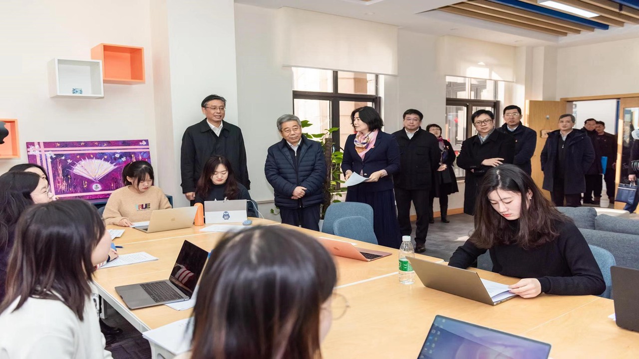 陈宝生部长一行首先来到上外卓越学院观摩本科教育战略拔尖人才培养创新平台。上外卓越学院致力于培养具有家国情怀、国际视野和全球胜任力的“多语种+”国际化拔尖创新人才。陈宝生部长经过正在授课中的中华文明史双语课堂、古希腊语课堂、英语辩论课教室,对学校多元的立德树人创新平台和人性化的教学环境表示赞许。