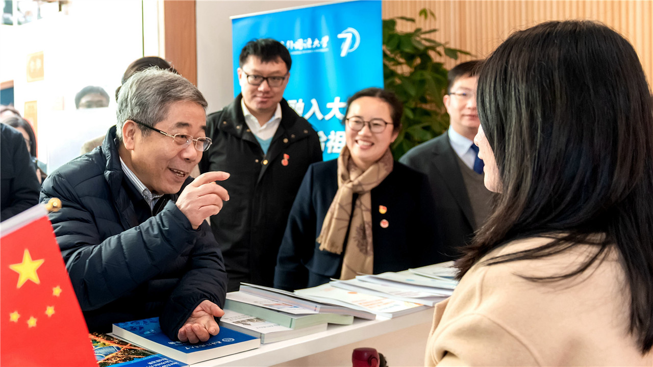此后,陈宝生部长一行参观了位于师生活动中心的学生活动空间,参观了学校师生为入伍退伍大学生撰写的春联书法作品展,慰问学生服务大厅的研究生并了解他们的学习生活情况,与少数民族专职辅导员、学生处资助管理教师亲切交流互动。
