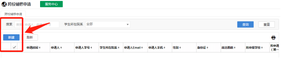 2.进入跨校辅修申请页面后选择“新建”按钮: