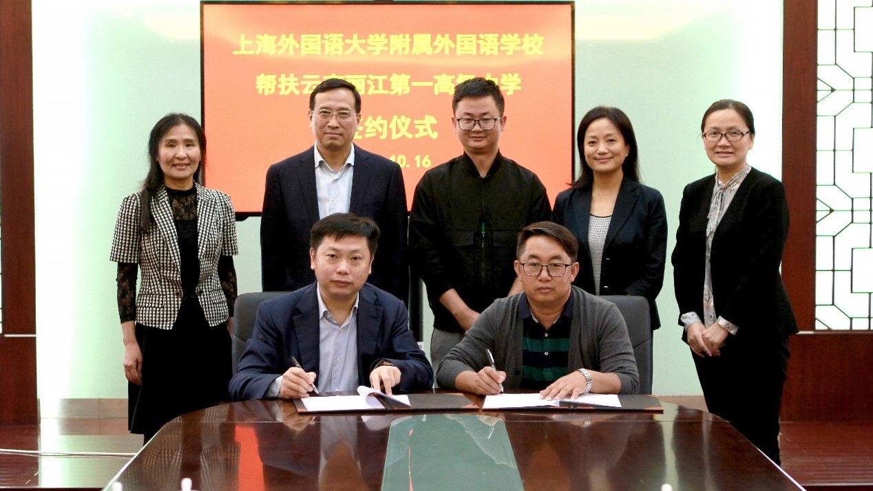 10月16日上午,附属外国语学校(简称“上外附中”)与云南省丽江第一高级中学(简称“丽江一中”)在上外附中8楼会议室举行对口帮扶签约仪式。