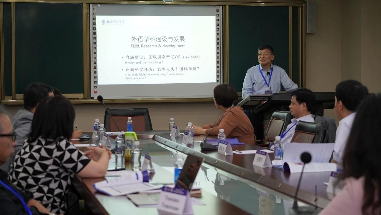 外交学院副院长孙吉胜分析了当前区域国别研究面临的主要困境与挑战,提出应围绕以语言为中心,深化区域国别研究;浙江外国语学院校长张环宙分享了借助人工智能等新兴技术进一步发挥学校区域国别研究的优势,助推浙江文化“走出去”的经验;北京语言大学副校长聂丹指出外语学科要主动求变,以区域国别学为“牵引”,朝着深化文明交流互鉴、培养高素质复合型国际化人才的学科转变;四川外国语大学副校长严功军结合区域国别学的特色,提出构建区域国别学学科专业、师资队伍、课程体系、教材建设、机构平台等完整体系。