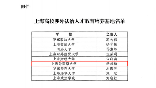 近日,上海市教育委员会公布了上海高校涉外法治人才教育培养基地名单,成功入选。校长李岩松教授担任基地负责人,法学院作为主要建设和执行单位。