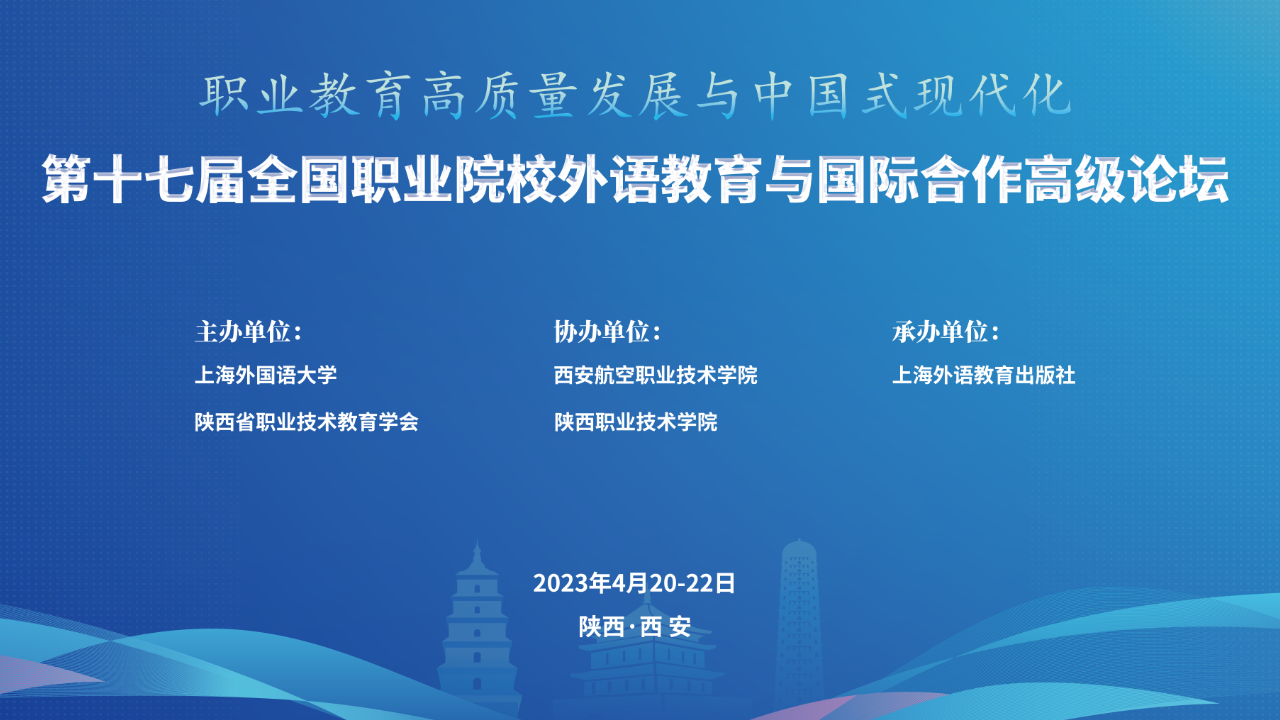 4月21日,在阳光明媚的四月天里,来自全国各地职业院校的专家和老师相聚在古城西安,参加由、陕西省职业技术教育学会共同主办,西安航空职业技术学院、陕西职业技术学院协办,上海外语教育出版社承办的“第十七届全国职业院校外语教育与国际合作高级论坛”,共商职业教育高质量发展大计,为高职教育发展注入新智慧、新动能、新活力。