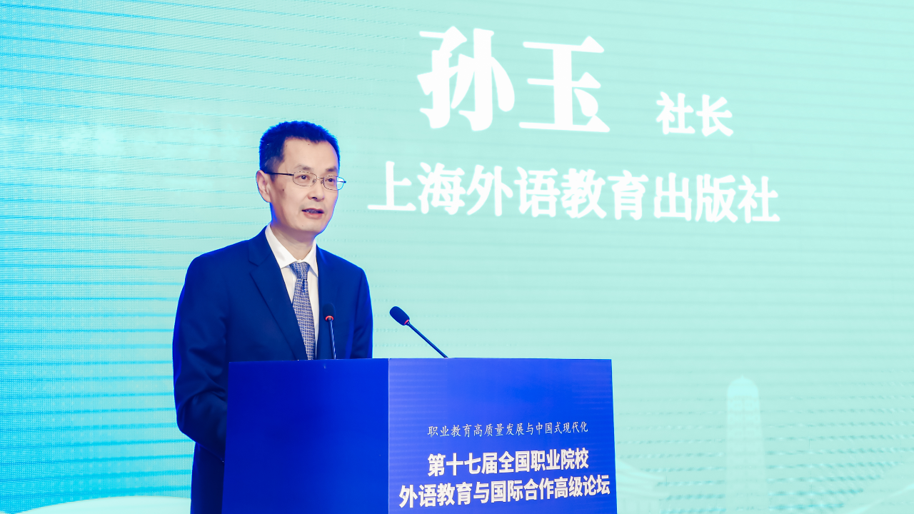 上海外语教育出版社社长孙玉编审代表承办方向主办方和协办方的辛勤付出表示感谢,对参会的各位专家和代表表示欢迎,并感谢大家长期以来给予外教社的宝贵支持。孙社长表示,外教社每年召开大学英语、英语专业和职业院校三大论坛供老师们交流、切磋,今年论坛参会人数之多,内容之丰富,代表参会热情之高昂,都达到了历史高峰。职业外语教育如何对接国家战略、推进国际化进程、利用新技术提高外语教学效率等需要我们去探索。外教社多年来坚持在职业教育领域耕耘,也取得了丰硕成果:三套职业外语教材获“十三五”国家规划教材,一套教材获全国教材建设奖。此外,外教社还设有科研项目立项、教师培训、词达人比赛、跨文化能力大赛等。