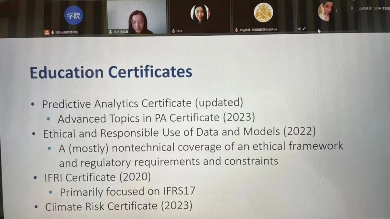 北美精算师协会SOA中国区首席代表李晶鑫向与会人员介绍了SOA近期教育项目及高校合作项目;英国精算师协会IFoA大中华区市场支持专家张婧则介绍了IFoA精算人才培养的新进展。两大国际精算师协会均表示期待能够进一步推进与上外精算专业的合作。