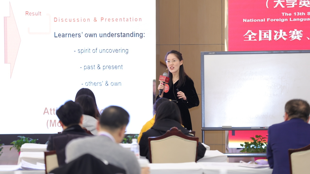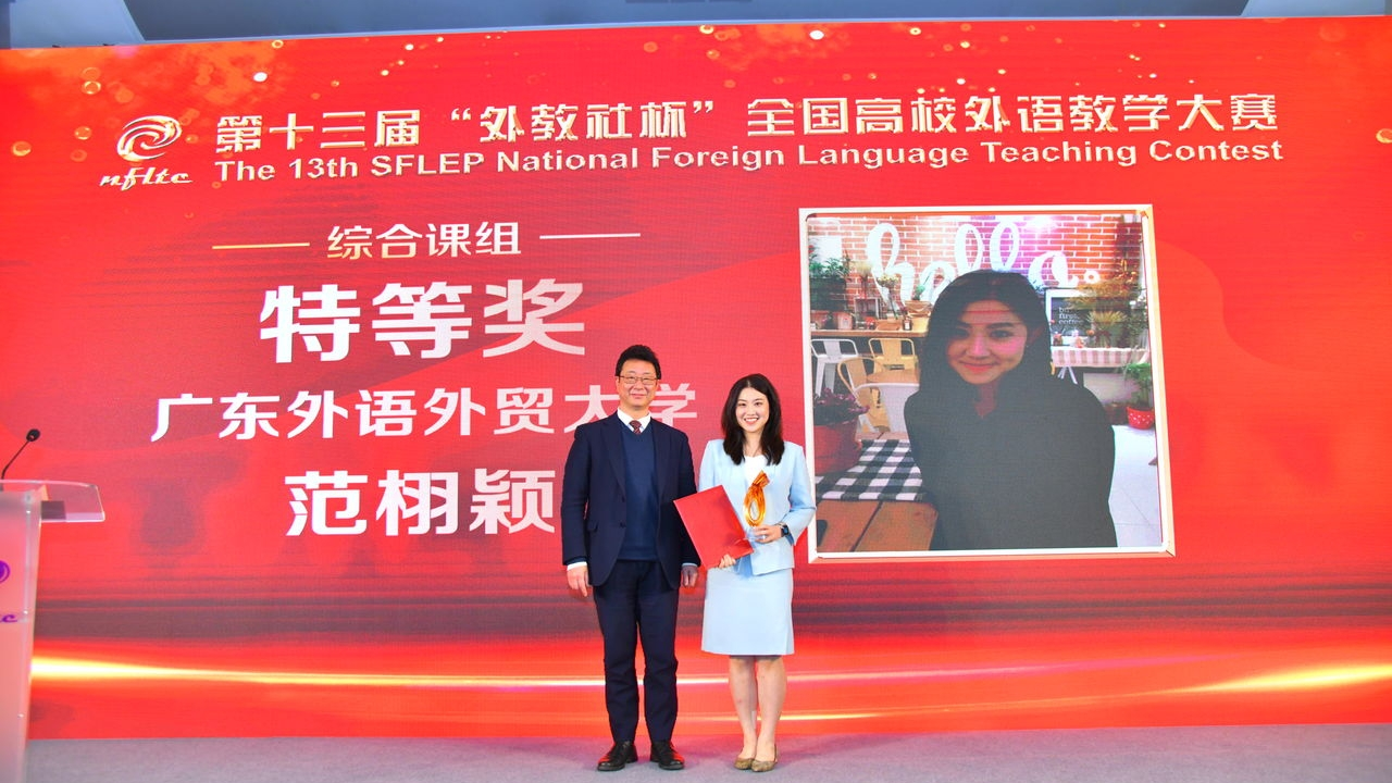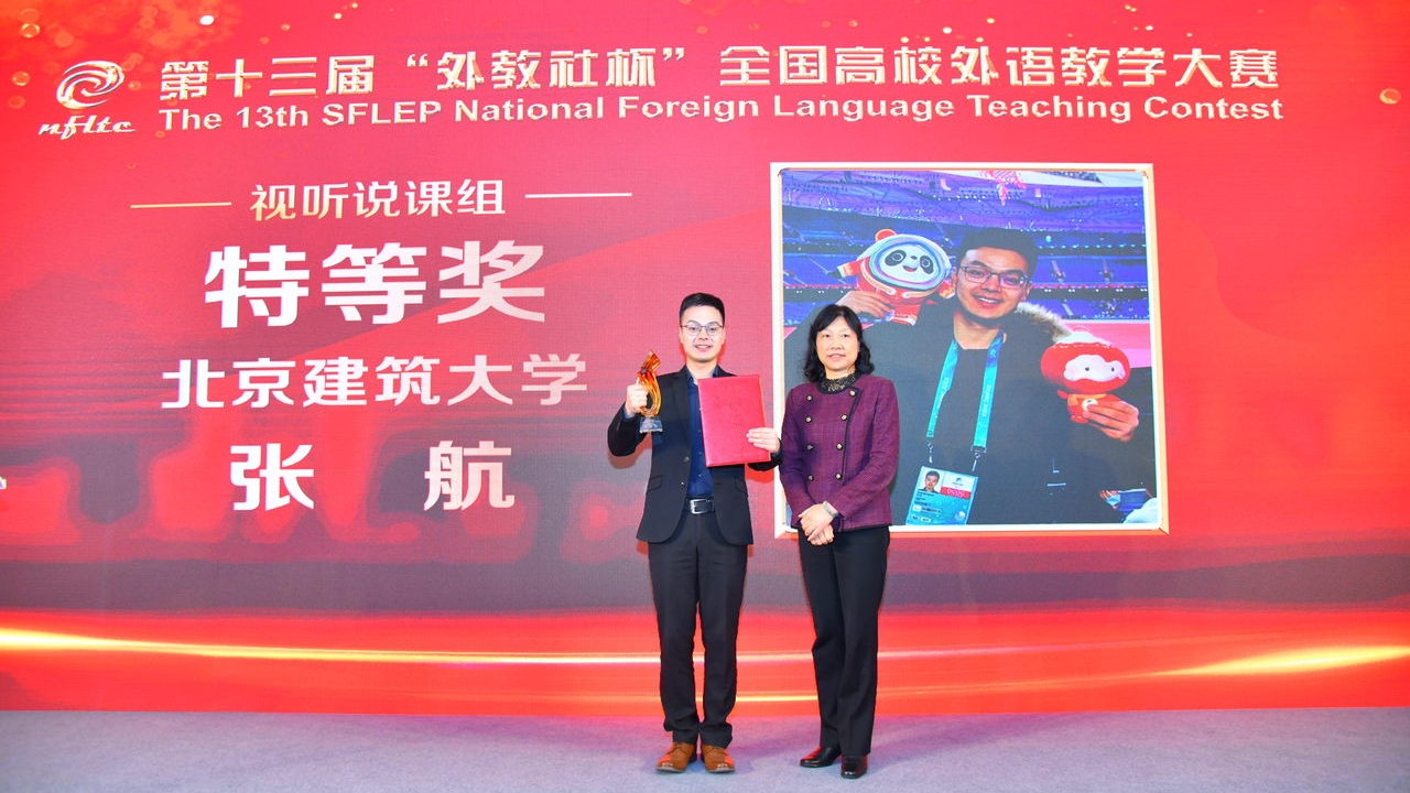 本届大赛分为综合课组和视听说课组,采用线下授课和说课相结合的形式。从全国30个赛区脱颖而出的60位优秀选手同台竞技,为场内外观众献上了一场精彩绝伦的教学盛宴。大赛通过视频号全程直播,在线观看人数逾30万人次。经过两天半的激烈角逐,最终,来自广东外语外贸大学的范栩颖老师和来自北京建筑大学的张航老师分别摘得综合课组和视听说课组特等奖桂冠。