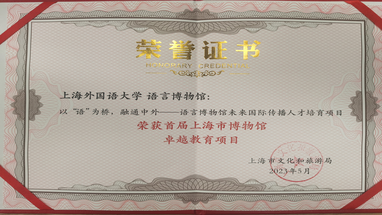 日前,上海市文化和旅游局发布首届上海市博物馆卓越教育项目获评名单,世界语言博物馆(简称“上外语博馆”)申报的“以“语”为桥,融通中外——世界语言博物馆未来国际传播人才培育项目”顺利入选。