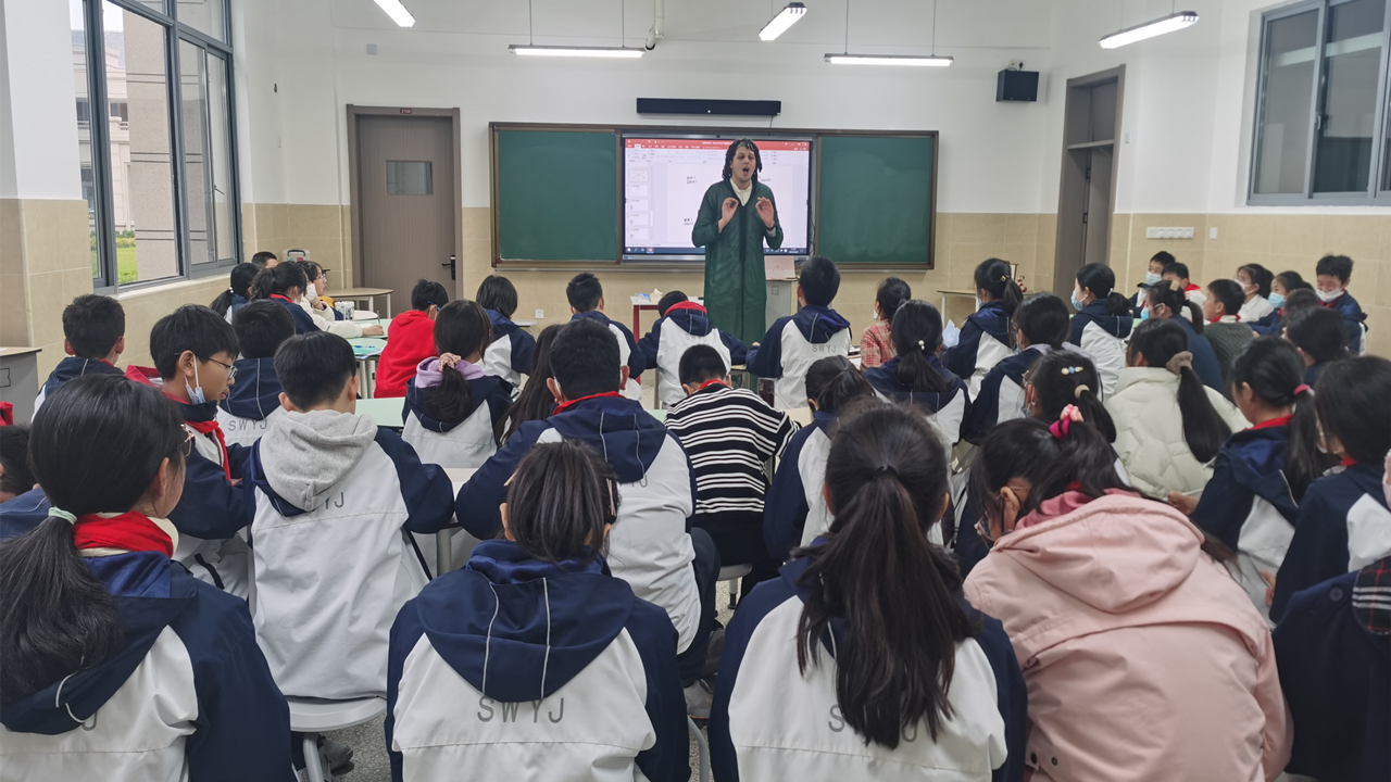 “‘多语荟世界’——移动博物馆进课堂”系列青少年课程以多语世界、多元文明为内容,以线下授课、现场互动、留学生参与为特色,与松江外国语学校,附属外国语学校松江云间中学,上海市松江区洞泾外国语试验学校三所学校合作,面向中小学生开展现场讲授,为提升学生多语素养和国际视野、促进基础教育和高等教育资源的贯通衔接做出了积极探索。