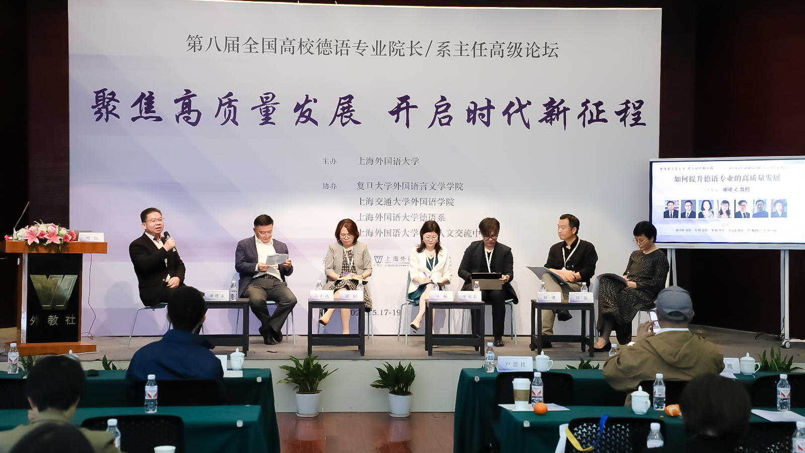 5月18日,第八届全国高校德语专业院长/系主任高级论坛在上海举办。本次论坛由主办,复旦大学外国语言文学学院、上海交通大学外国语学院、德语系、中德人文交流中心协办,上海外语教育出版社承办。来自全国各地60余所院校(其中双一流高校26所)的近百位德语专业院长、系主任和学科负责人参加了本次论坛。